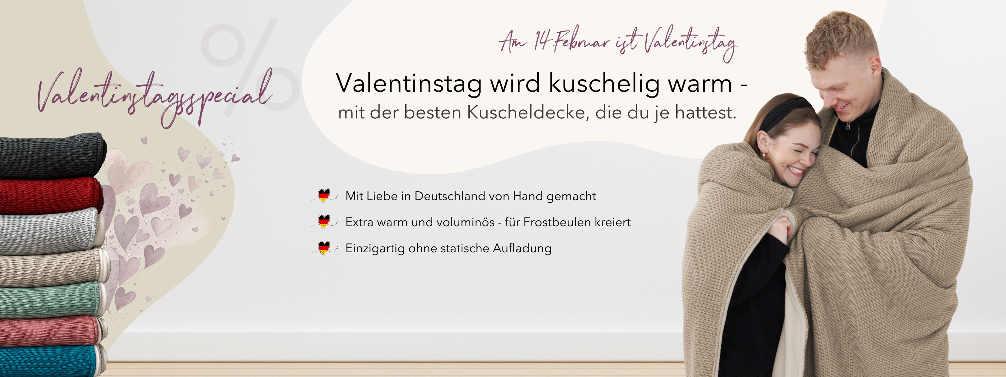Über 4 Jahre später, nach unzähligen Stoffmustern und Qualitätstests und über 5000 zufriedenen Kund:innen können wir heute mit Stolz sagen, dass wir alle Kuscheldecken mit größtmöglichem Kuschel-Faktor immer noch in Köln anfertigen. *und das wird auch so bleiben 🙂