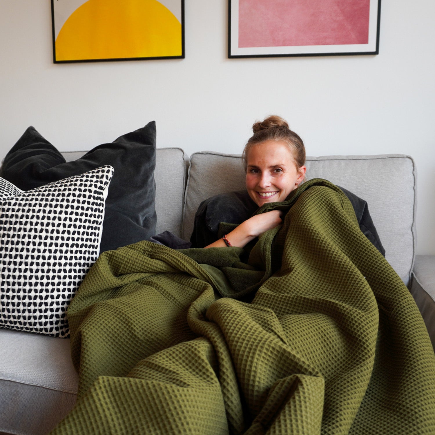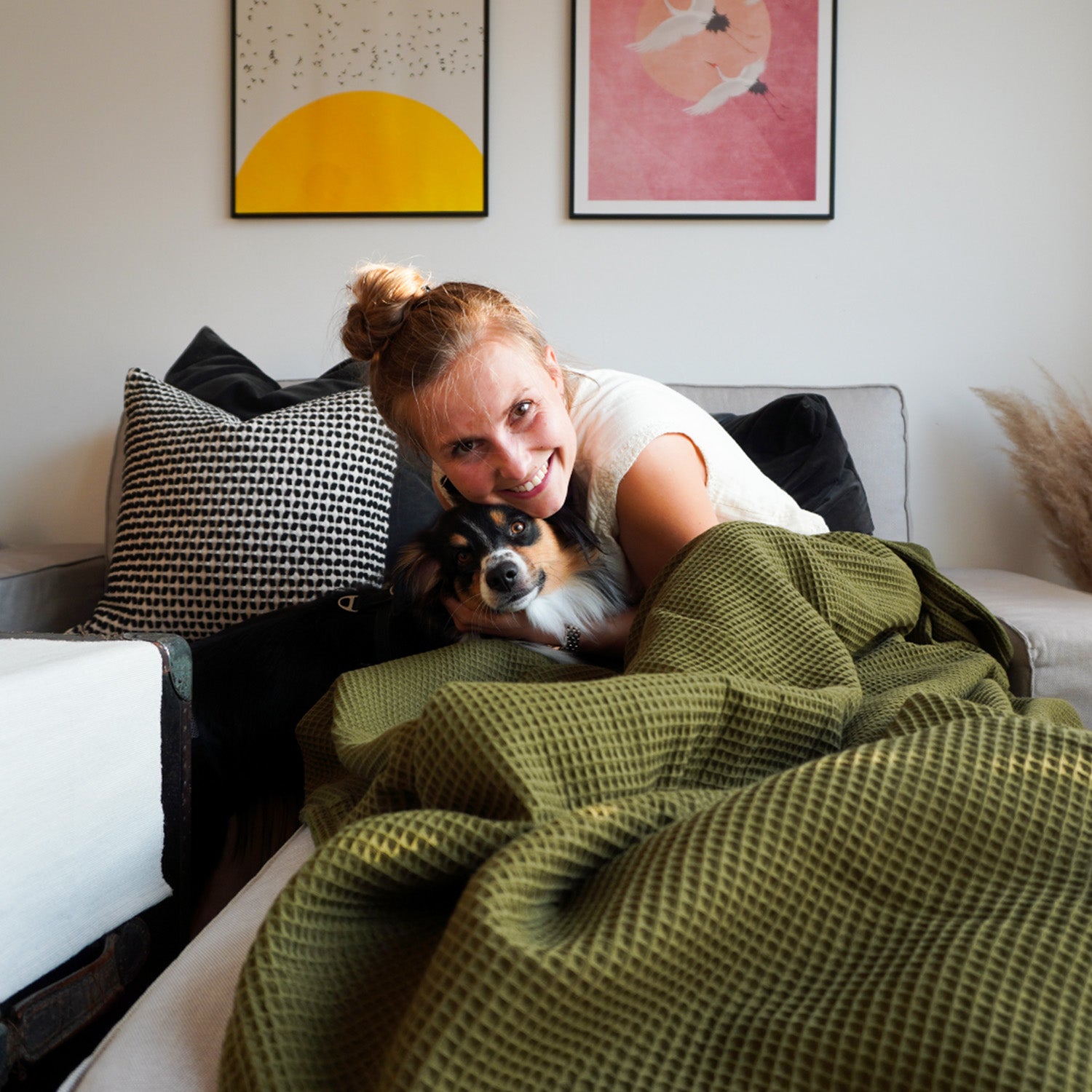 In unserer kleinen Kölner Schneiderei nähen wir deine Kuscheldecke "Bambus" Grün in liebevoller Handarbeit.
