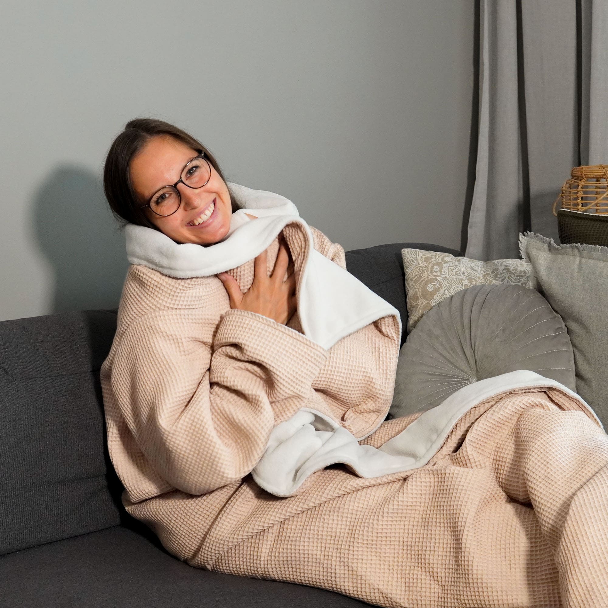 Bist du auf der Suche nach einer Kuscheldecke mit Ärmeln aus 100% Baumwolle?