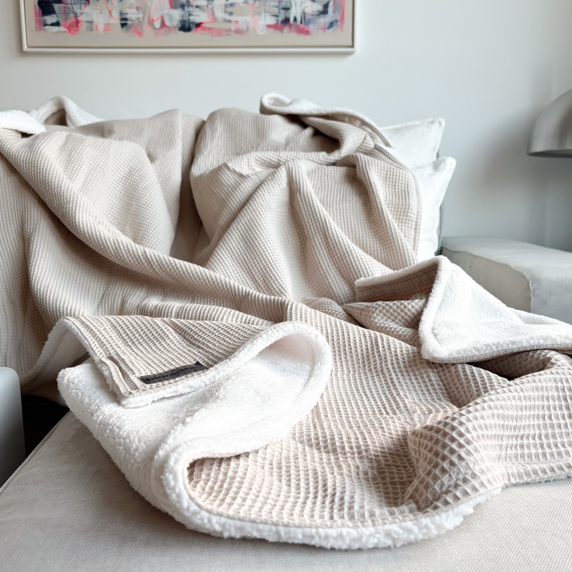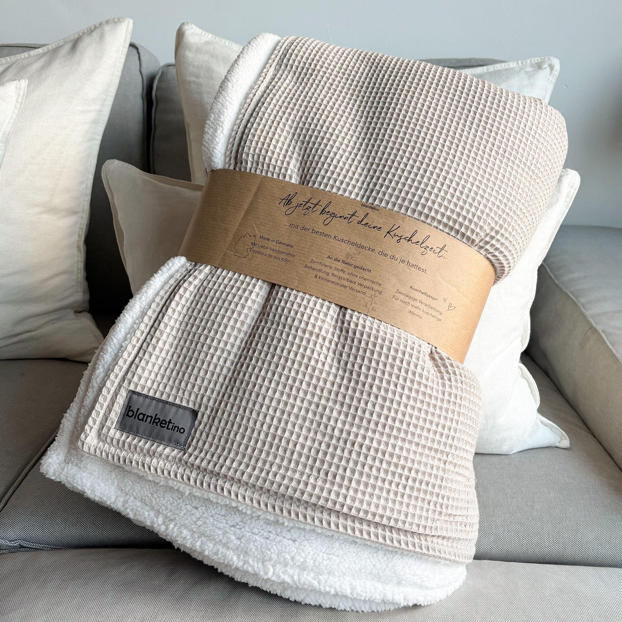 Kuscheldecke mit Teddy-Fleece • Latte Macchiato • Beige