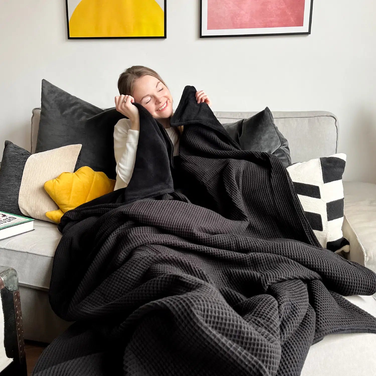 Wir haben viele Kuscheldecken – hier zeigen wir dir unsere zwei Bestseller im Vergleich: Baumwollstrick für ein sanft beschwerendes, wärmendes Gefühl und Waffelpiqué für eine leichtere, aber dennoch warme Umarmung.