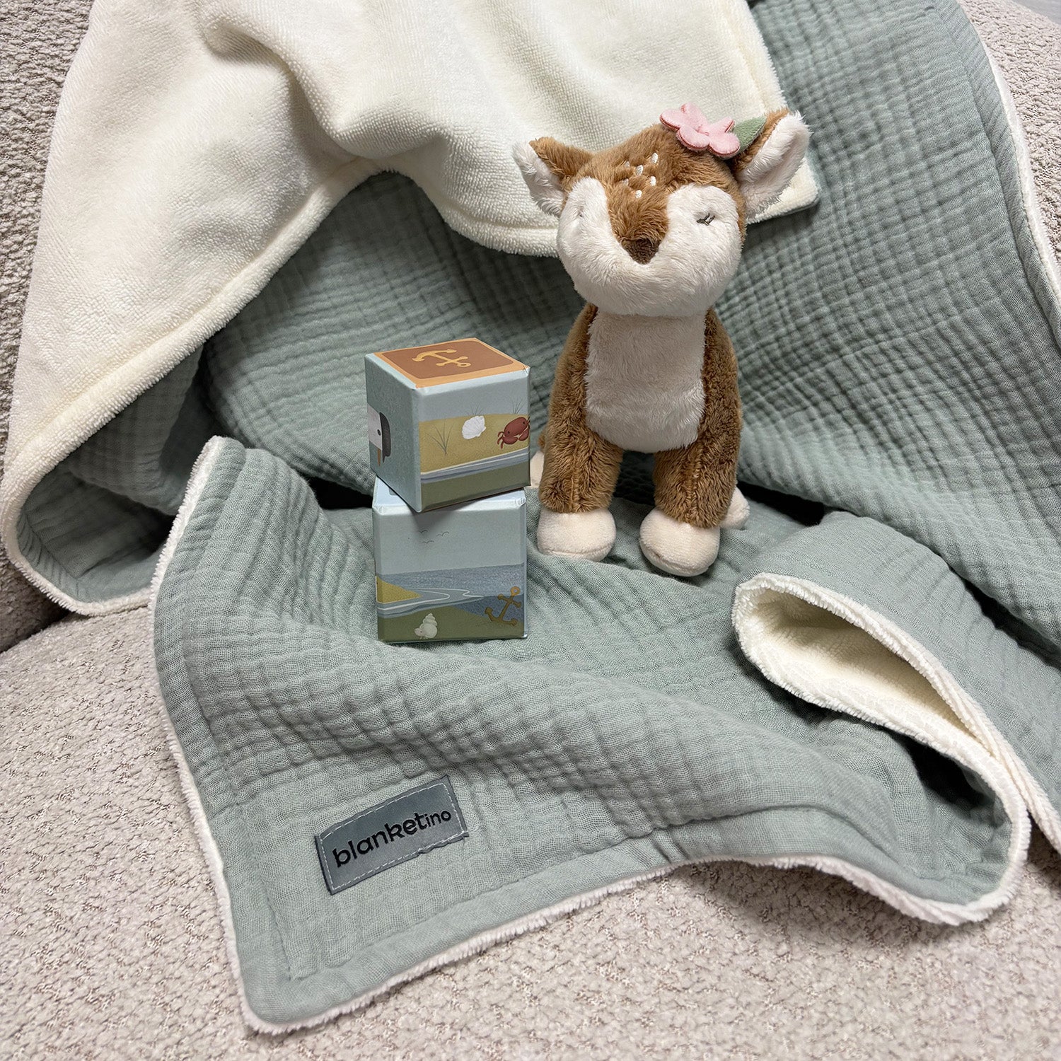 Musselin Babydecke mit Namen - 70 x 100 cm • Vanille-Grün