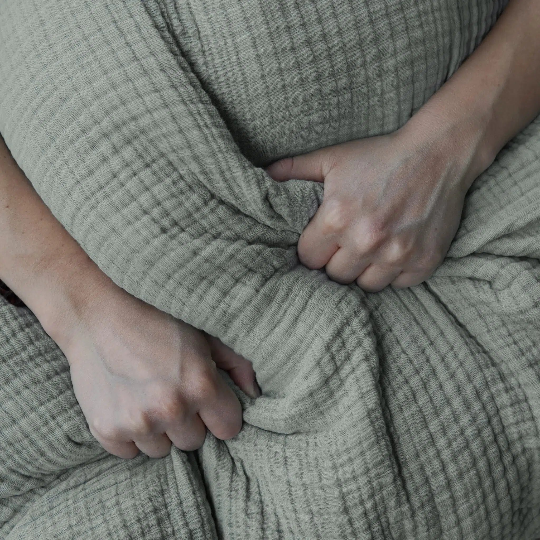 Der zarte, atmungsaktive Musselin umhüllt dich sanft – ganz ohne Hitzestau.