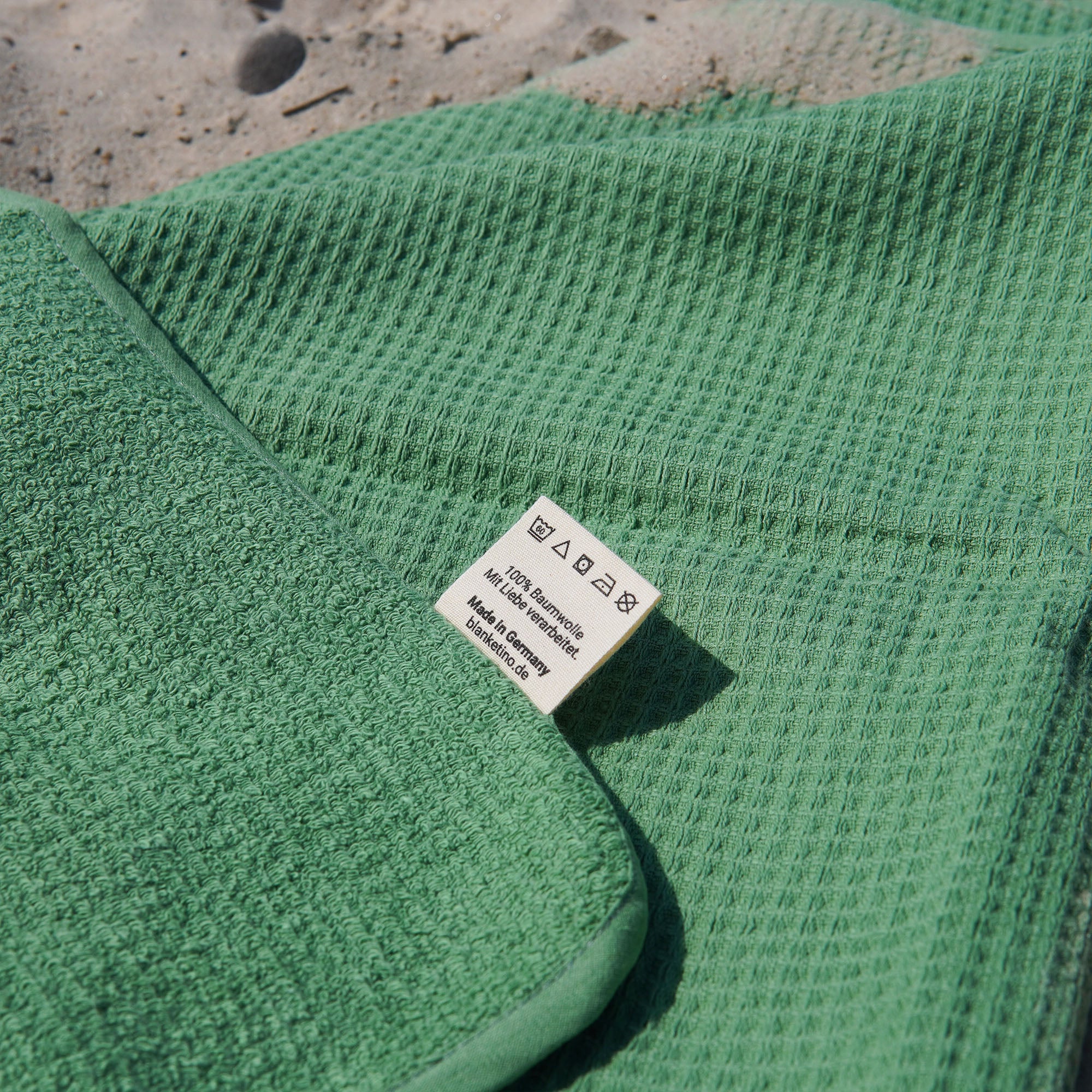 In unserer kleinen Kölner Schneiderei nähen wir deine "Saunahandtuch Seegrasgrün" in liebevoller Handarbeit.